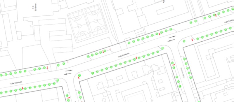 En la actualidad, la calle Estefanita presenta un predominio del automóvil en un 75% de la sección transversal. Esta sobredimensión de la calzada favorece una velocidad de circulación excesiva creando un entorno poco seguro y acogedor, especialmente para los escolares. Además, los accesos a los colegios carecen de mobiliario urbano adecuado y zonas de sombra, lo que hace menos agradable la estancia.
